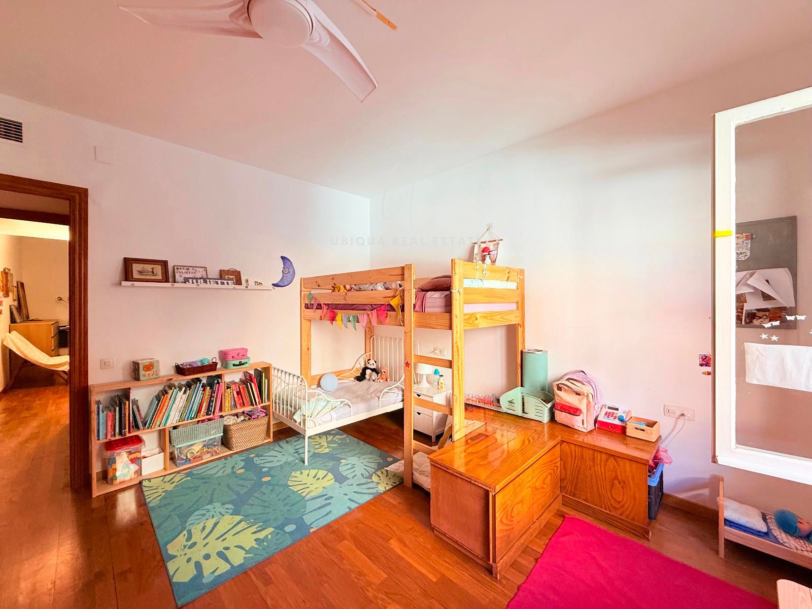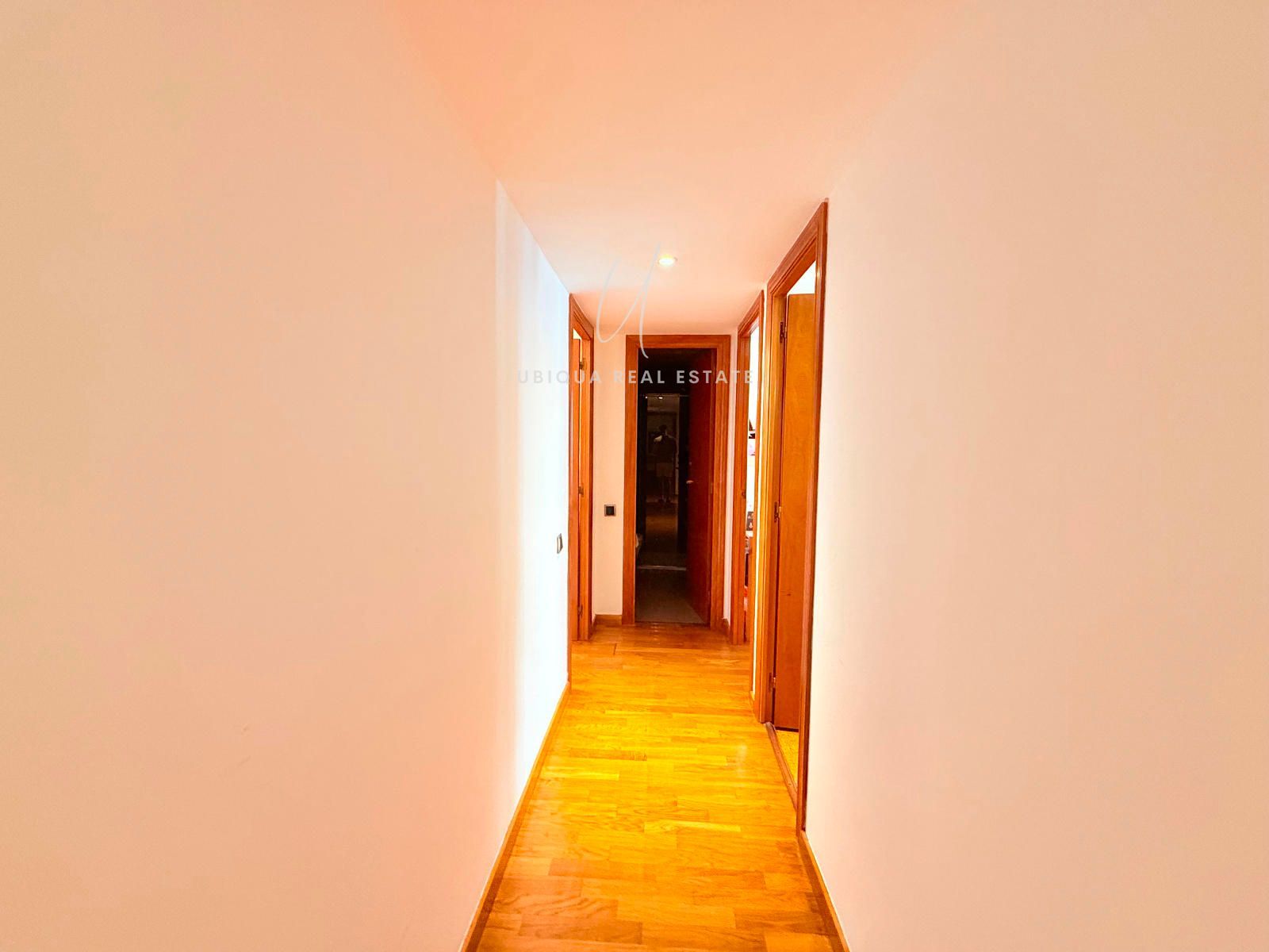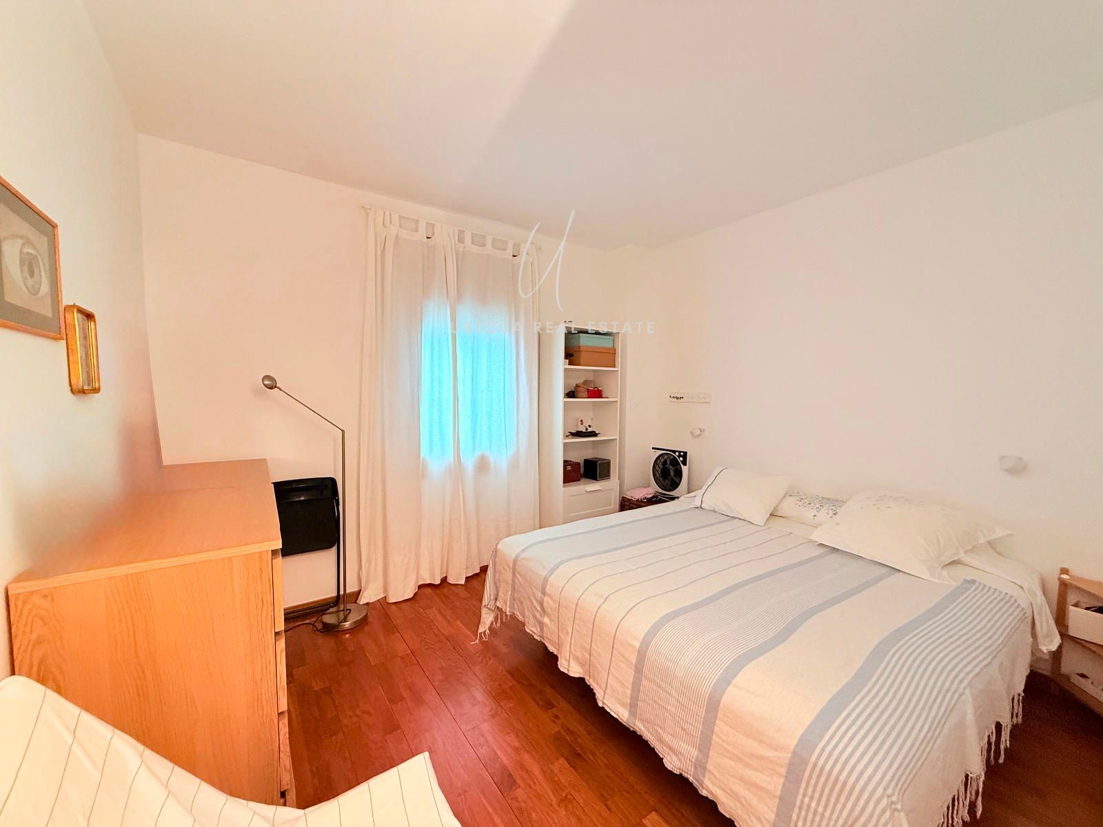La zona de noche está compuesta por tres habitaciones exteriores: dos dobles y una suite principal con baño privado, vestidor con armarios y un cuarto adicional ideal como despacho o zona de almacenaje. En total, dispone de dos baños completos.