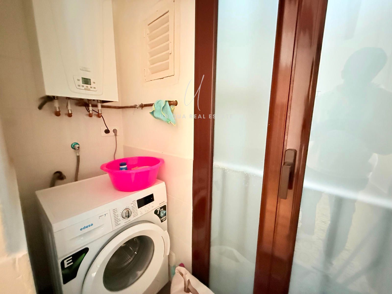 La vivienda dispone de dos habitaciones exteriores con salida a balcón, un baño completo y un luminoso salón con acceso a balcón. La cocina, integrada y equipada con electrodomésticos, también cuenta con ventana a balcón. Además, ofrece un práctico espacio de lavadero, armarios empotrados y splits de aire acondicionado.