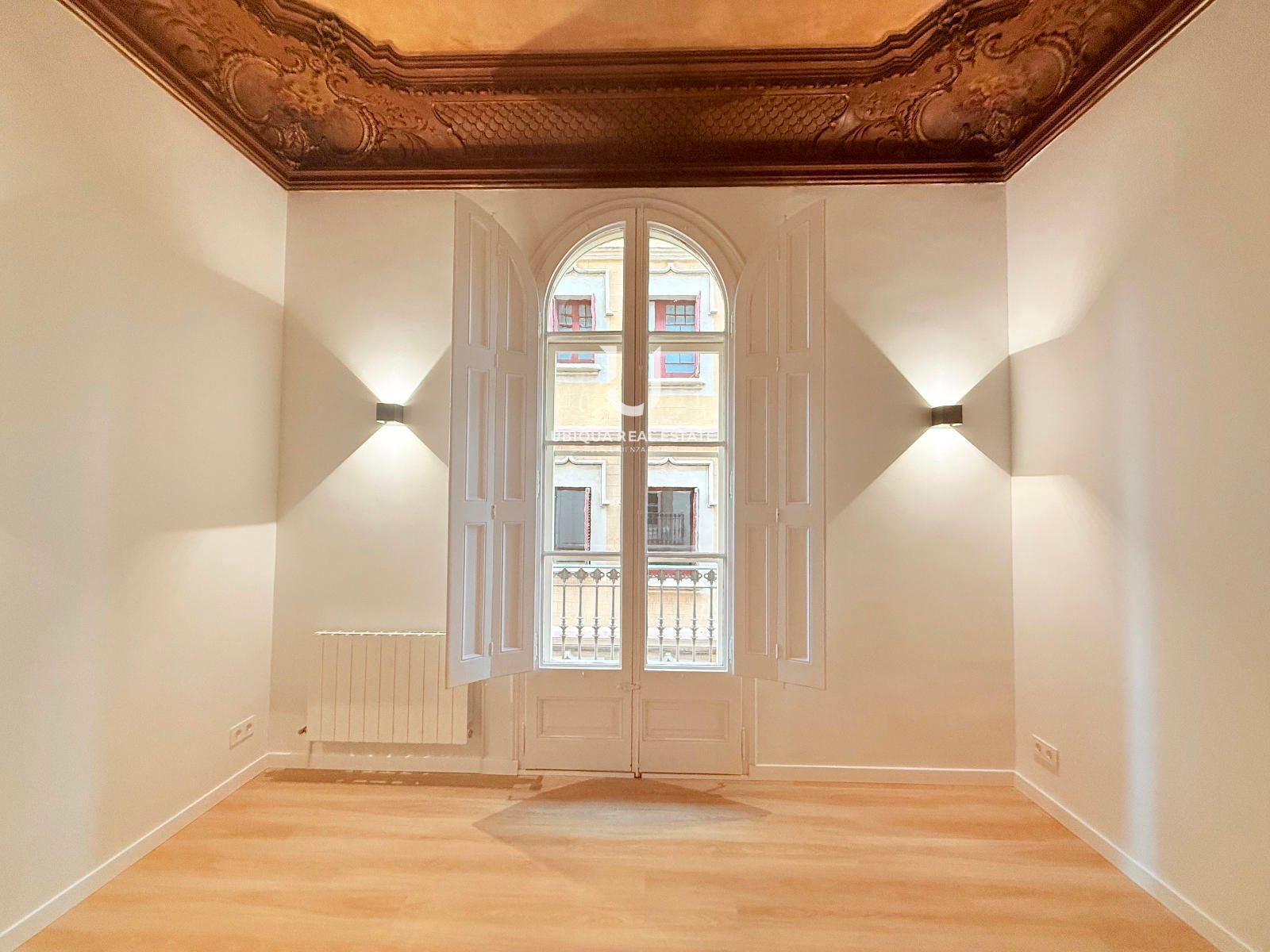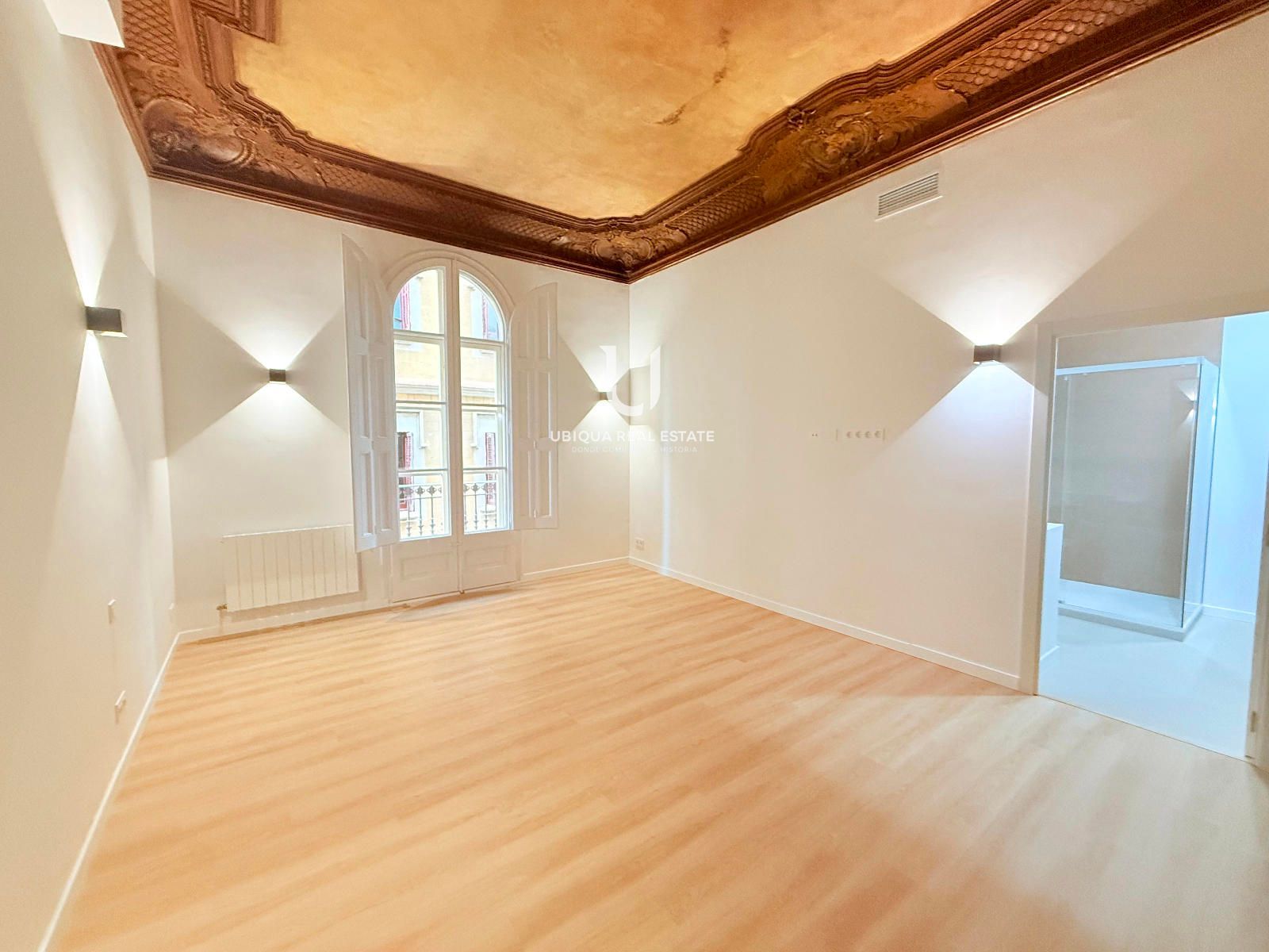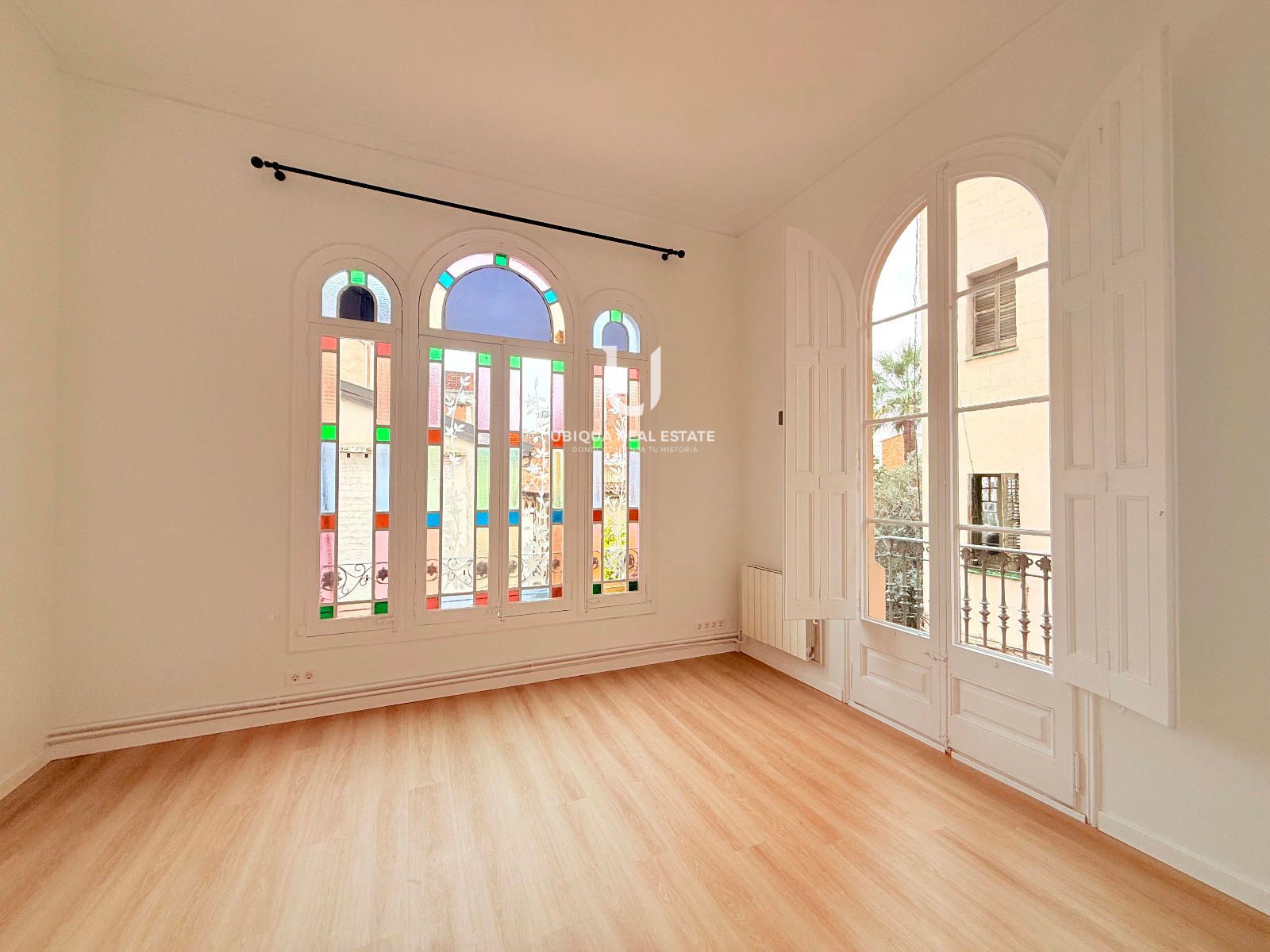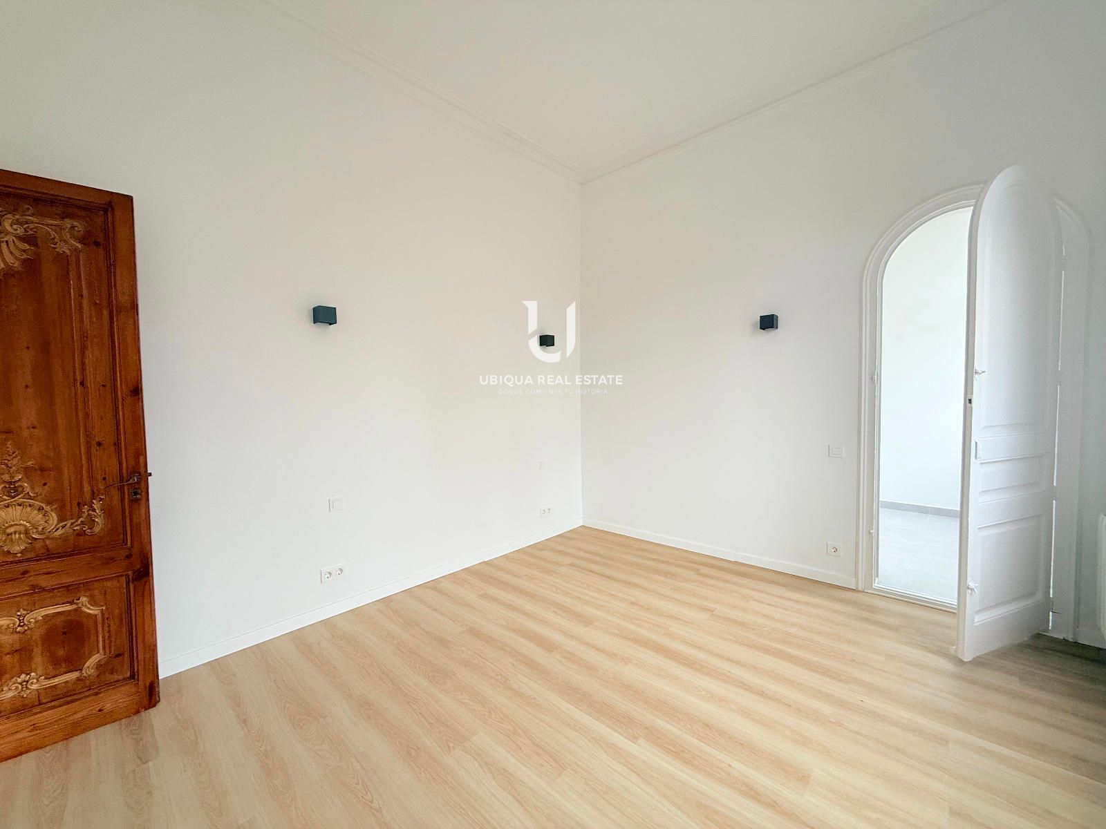Se distribuye en 6 dormitorios exteriores con amplios ventanales, salón-comedor de generosas dimensiones también exterior, baños completos renovados y cocina office independiente totalmente equipada. Destacan los techos altos perfectamente conservados y los suelos de parquet noble en todas las estancias, que aportan calidez y elegancia clásica.