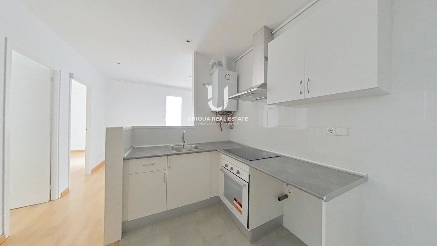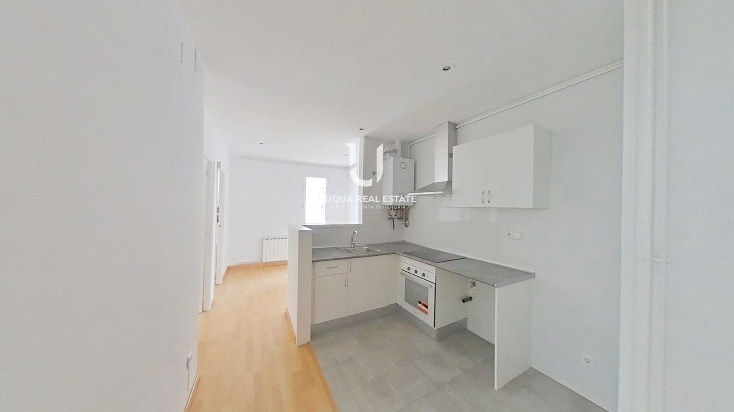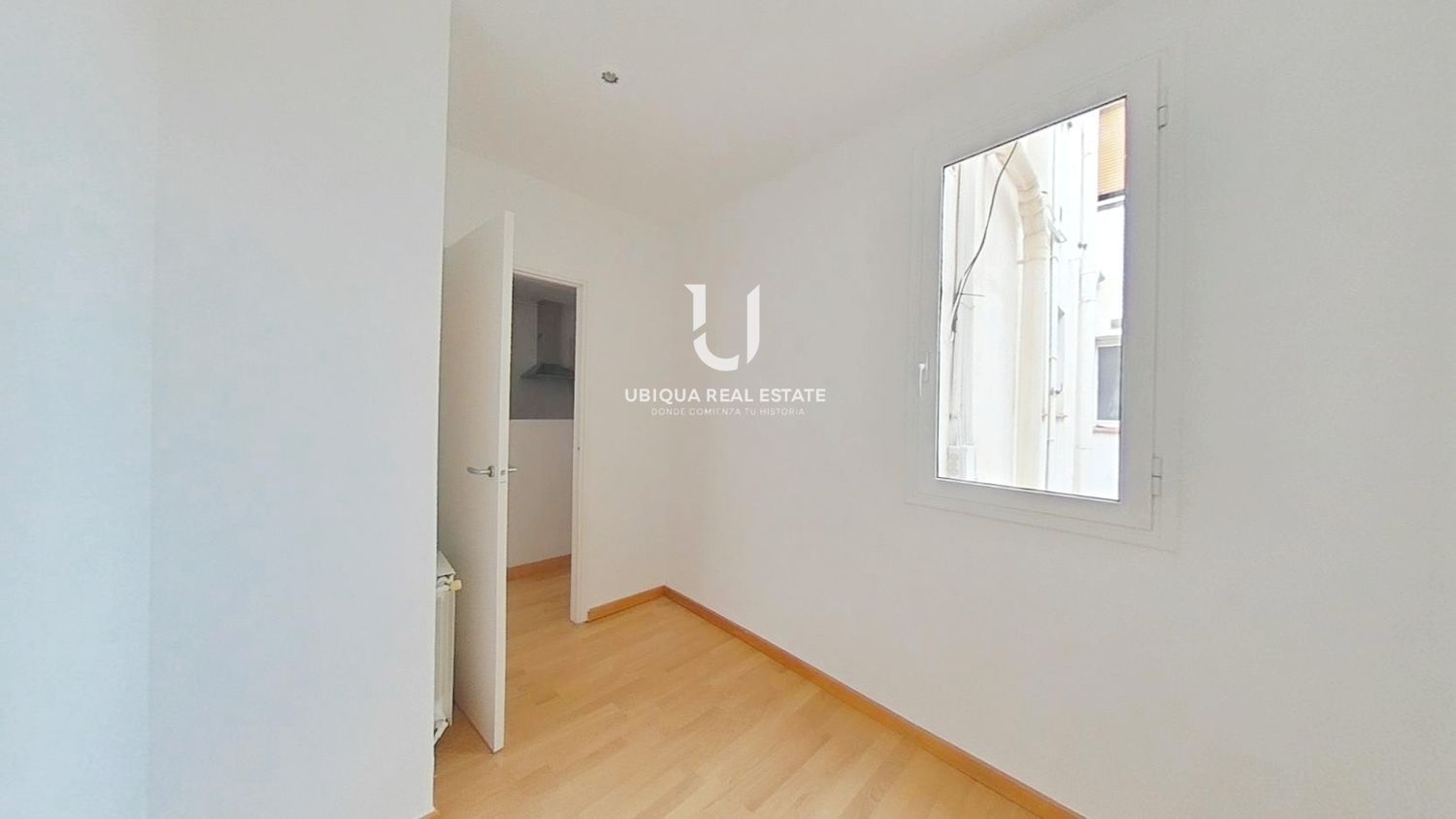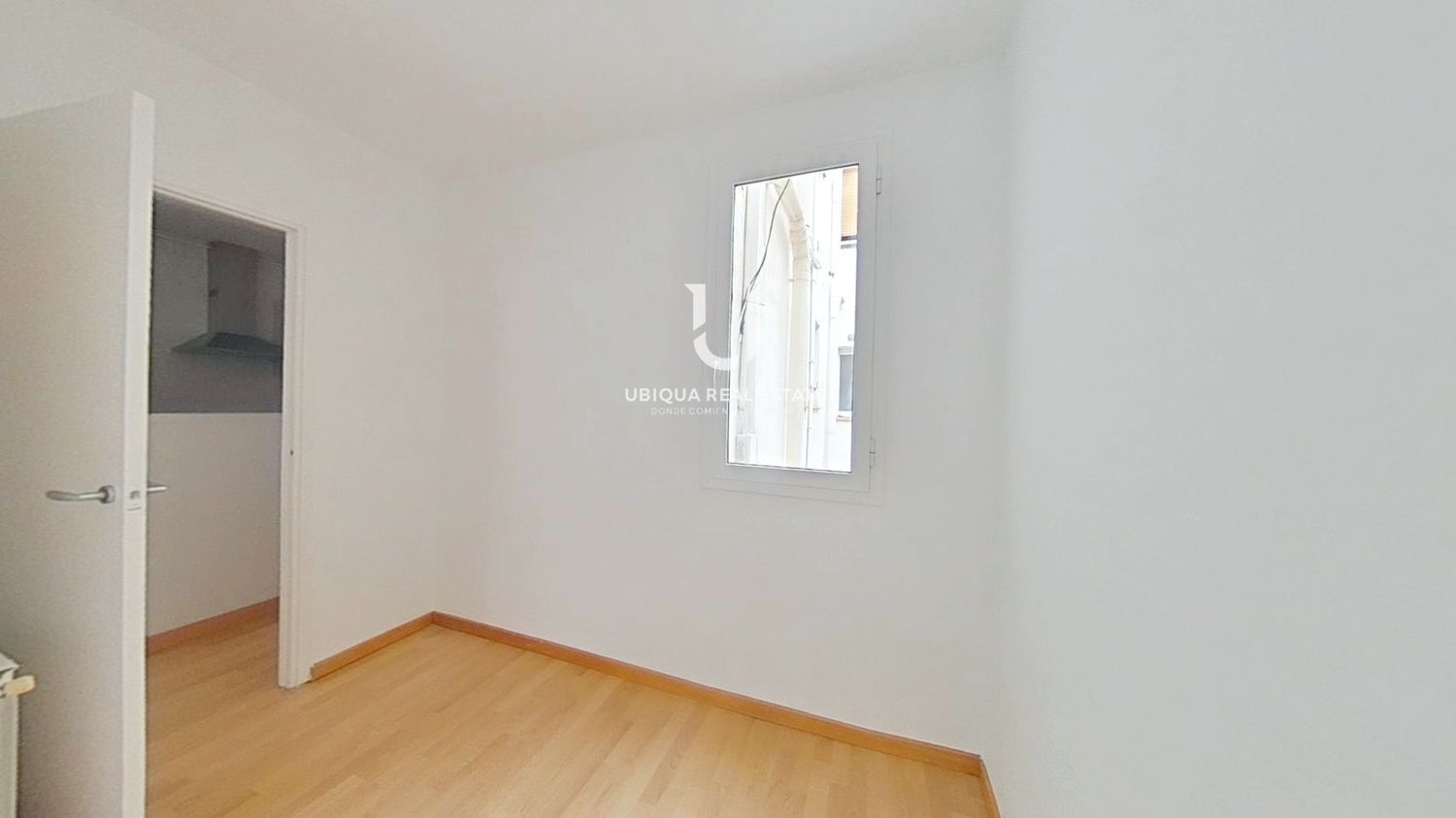 La vivienda se distribuye en 2 dormitorios, salón-comedor luminoso, cocina independiente equipada con muebles altos y bajos, vitrocerámica, horno y campana extractora. Suelos de tarima en todas las estancias.