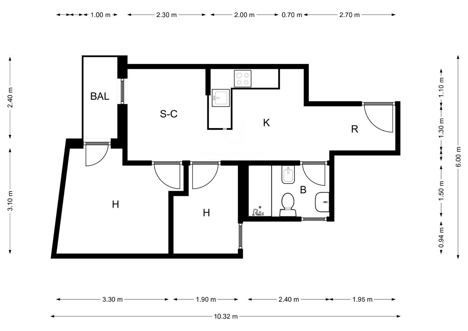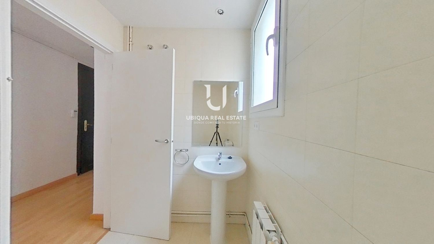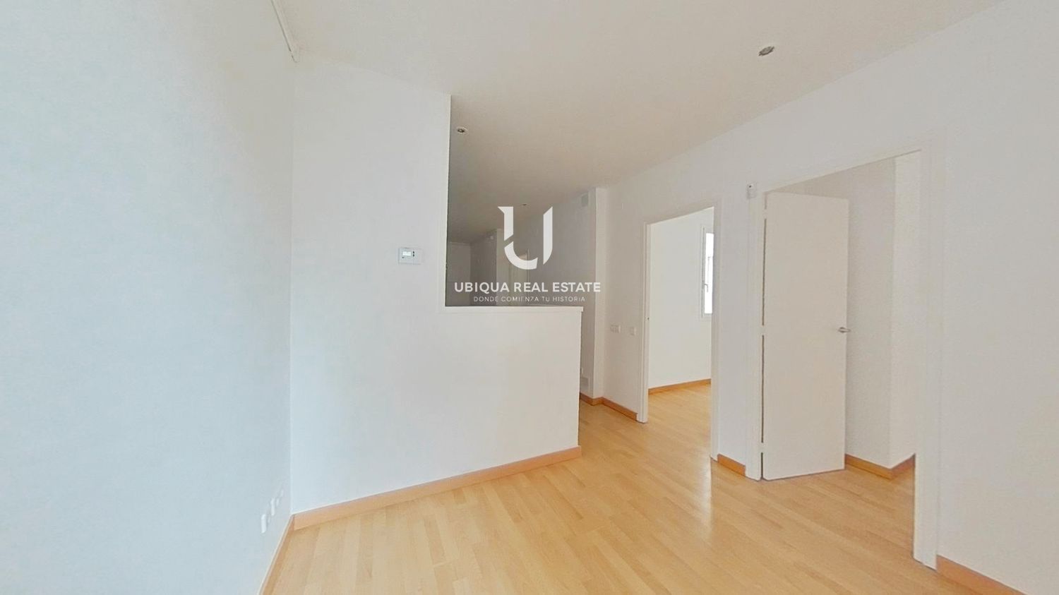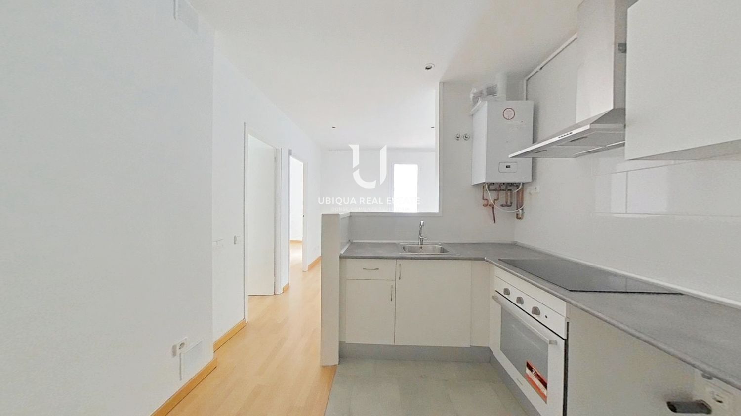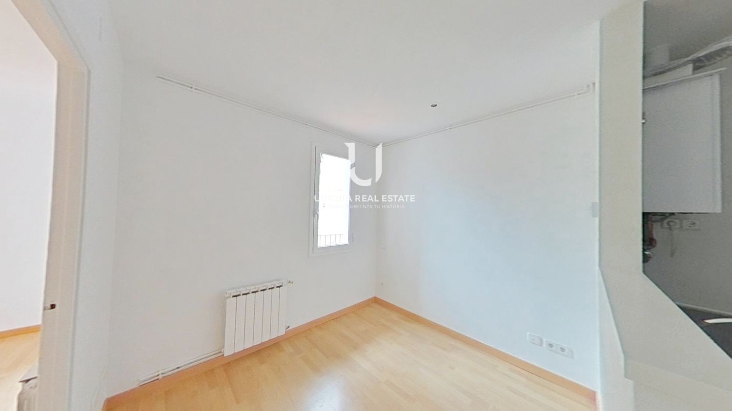 La vivienda se distribuye en 2 dormitorios, salón-comedor luminoso, cocina independiente equipada con muebles altos y bajos, vitrocerámica, horno y campana extractora. Suelos de tarima en todas las estancias.